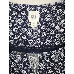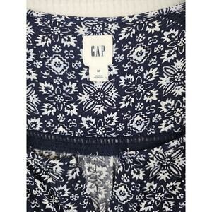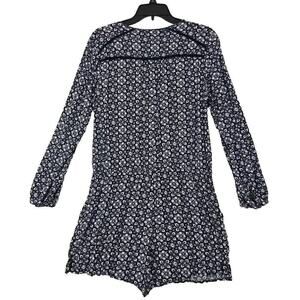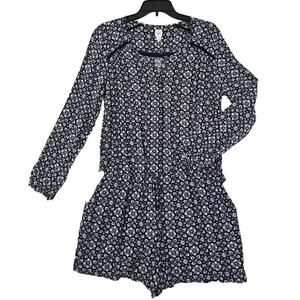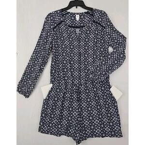 GAP ~Woman Size M~ Blue/White Floral Print Romper Long Sleeve Drawstring, Pocket