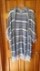 Excellent condition open long cardigan by GAP. Tassel fringe on sleeves and at bottom. Navy stripes on cream background.  Loose weave. Approx 35in (not counting fringe), 16in sleeve. Possible 22in bust (hard to measure when open style).