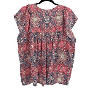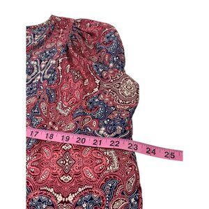 GAP Women Babydoll Blouse Short Cap Sleeves Sz XL Pink Flowy Boho Paisley 4-3