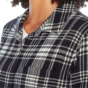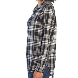 GAP Black Plaid Long Sleeve Oversized Soft Cotton Blend Boyfriend Flannel Shirt