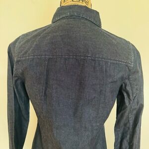 GAP Women Dark Wash Denim Western Fitted Cotton Button Up Shirt Gold Buttons
