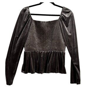 GAP Women Velvet Top Size L Brown Smocked Bust Peplum Hem Long Sleeve 7a-2