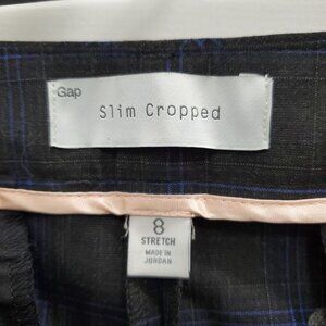GAP Women's Black Blue Windowpane Plaid Slim Cropped Dress Career Pants Size 8