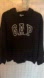 Classic black pullover hoodie with GAP logo. Comfortable and versatile. Front center pocket and hoodie strings. Lighting used to show detail of sweater. Ask questions before buying.