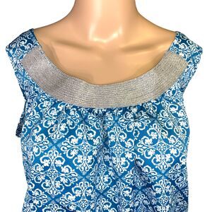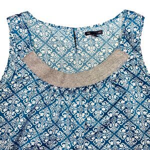GAP Womens Blouse Top Silver Collared Sleeveless Pullover Teal White Medium