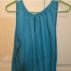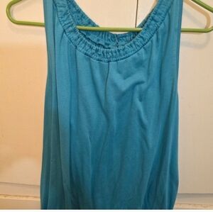 This pre-owned, gently used GAP tank top in a beautiful blue is the perfect addition to your closet. The top features a flattering gathered neckline and a unique gathered hem, creating a comfortable and stylish bloused effect. The soft, flowy fabric drapes beautifully, making it an ideal choice for warm weather.