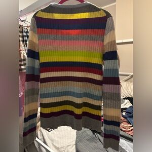 Vibrant stripes in a cozy crewneck design. Ideal for casual wear.
