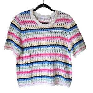 GAP Womens Crochet Sweater Size L Multicolor Striped Short Sleeve Beachy Summer