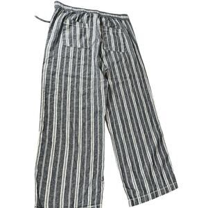 GAP Women's Crop Wide Leg Pants Blue & White Pin StripeSize Large Linen Blend