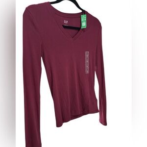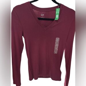 GAP Women's Deep Red V-Neck Long Sleeve Tee