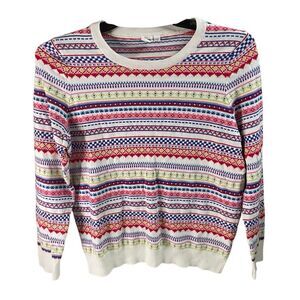 GAP Women’s Fair Isle Crew Neck Knit Sweater Size Large White Multicolor 2019