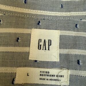 GAP Women's Fitted Boyfriend Stripe Shirt Blue Stripe Cotton Metallic size L
