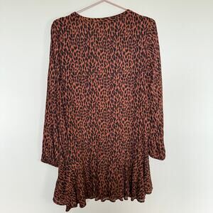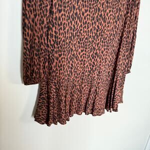 GAP Womens Flounce Hem Dress Small Brown Animal Print Long Sleeve Old Money