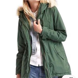 GAP Women's Hooded Utility Parka Olive Green Size Medium