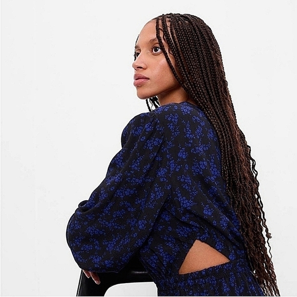 GAP Women’s LENZING ECOVERO Cutout Floral Blue/Black Midi Dress NWT-Size XL
