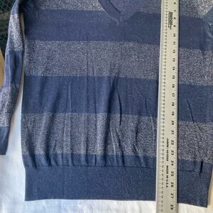 GAP Women’s Long Sleeve V-neck Sweater size M, Sequin Metallic Blue