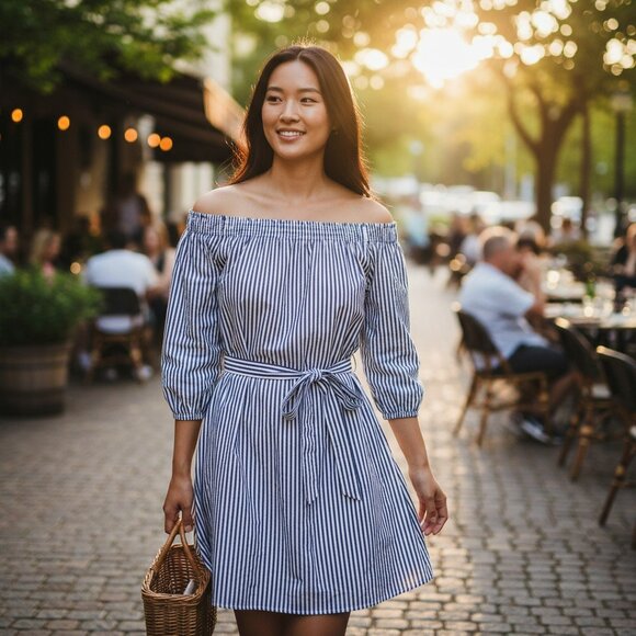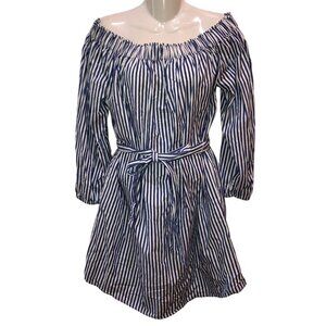 GAP Womens Medium Blue Striped Long Sleeve Off the Shoulder Summer Dress Size M