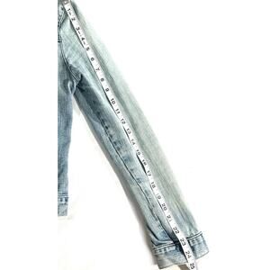 Classic GAP women’s denim jacket in a versatile light wash. Features stretch fabric for comfort and fit, button front closure, chest flap pockets with button detail, and buttoned cuffs. Timeless style that pairs easily with dresses, skirts, or casual outfits.