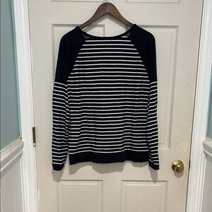 GAP Women's Navy and White Striped Long Sleeve Top size XL