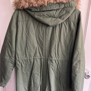 Keywords: GAP, Anorak, Parka, Jacket, Olive Green, Military Style, Faux Fur Hood, Drawstring Waist, Womens, Outerwear, Casual Jacket, Fall, Winter, Hooded Jacket