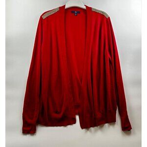 GAP Women's Open Draped Cardigan Gold Detail on Shoulders Red XL
