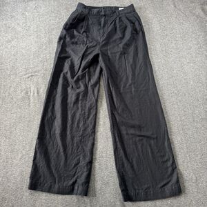 GAP Women's Pant Pleated Linen Blend Wide Leg Trouser Black 12 Tall