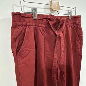 GAP Women’s Paperbag Pants Sz 10 Dark Red Taper Zip Tie Waist Pockets Pre-Owned