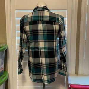 GAP Women's Plaid Button-Down Shirt - Green, Black, and White