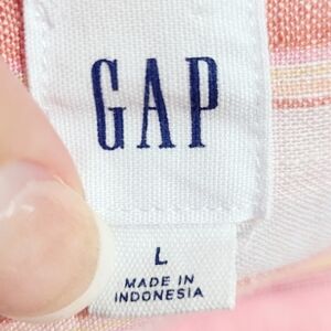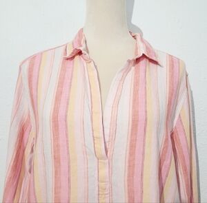 GAP Women’s Popover 100% Linen Tunic Blouse Pink Multi Stripe Long Sleeve Large