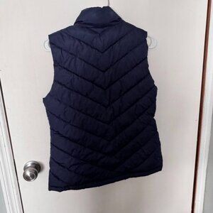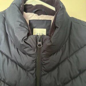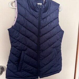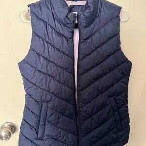 Gap Women's Navy Blue Zip up Puffer Vest with two side pockets and inside lined a light lilac color. Never worn, just sat in a closet.