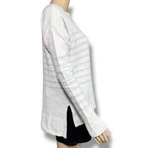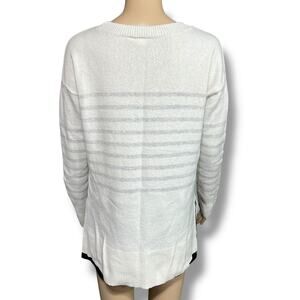 White Gray Striped Long Sleeve Crew Neck Pullover Knit Tunic Sweater GAP