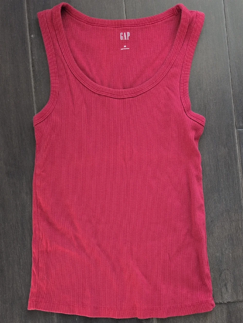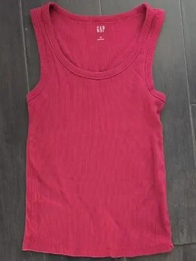Ribbed tank from GAP in a rich raspberry hue. Scoop neckline and fitted silhouette. Soft stretch fabric for easy layering. Casual staple for warm-weather looks.