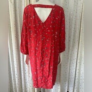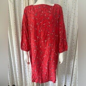 GAP Women's Red Floral Paisley Long Sleeve Sheath Dress With Pockets Size L