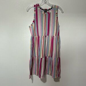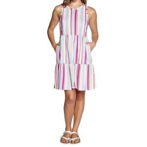 GAP Women's S Summer Dress Multi Stripe Pockets Slub Jersey Tiered Hem NWT