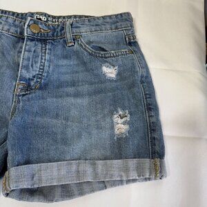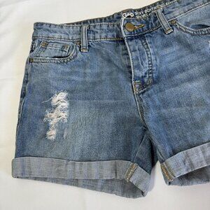 GAP Womens Sexy Boyfriend Jean Shorts Size 0 Distressed Folded Hem Mid Rise