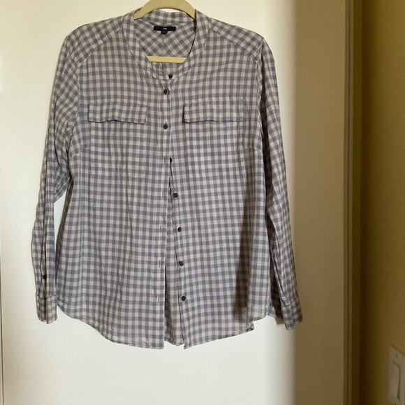 Light weight, 100% cotton plaid shirt, button down, large, light grey