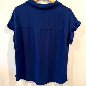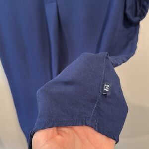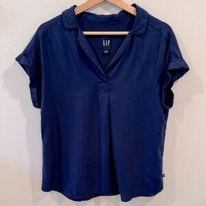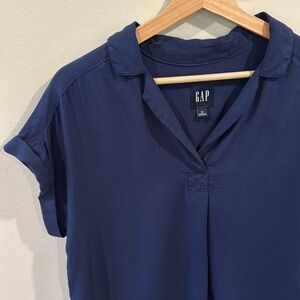 Chic deep blue blouse by GAP. Features a classic collar and short sleeves. Ideal for versatile styling.