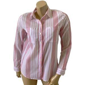 GAP Womens Size XS Long Sleeve Red White Striped Button Front Collared Shirt