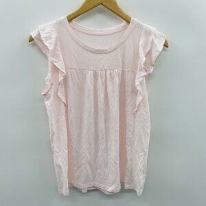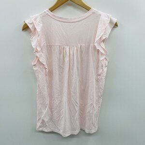 GAP Womens Small Luxe Ruffle Top Flutter Sleeve Tee Crewneck T-Shirt Pink 040
