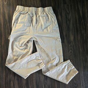 Very gently loved and laundered pair of pull-on beige/khaki cargo pants from GAP. Nice, wide elastic comfort waistband. Side pockets, rear pockets, thigh pockets. Great quality and condition. All seasons. SIZE S/MEASUREMENTS: waist = 30" x 10" rise = x inseam = 29" long.