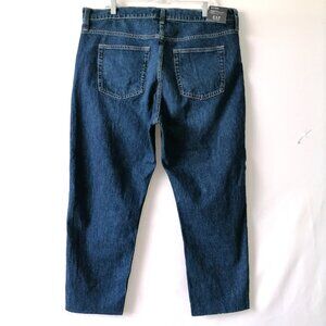 Don’t fit me anymore but loved these jeans. Every day and reliable. Classic straight leg jeans. Raw hem. Dark blue denim. Timeless style. No tag.