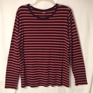 GAP Women’s Striped Tee Wine/Peach XXL Long Sleeves Crew Neck EUC Fall