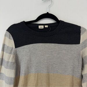 GAP Women's Sweater Stripes Gray Cream Black Merino Wool Blend Size Small