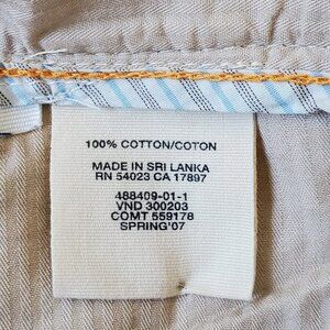 GAP Women’s tan high rise classical jeans. 100% lightweight cotton fabric. Front zipper and button closure. It has 2 sides flat pockets, 2 back pockets with flaps and button closure. New, excellent condition. Machine wash warm. Waist 34 in, Hip 42 in, Inseam: 34 ½ in, Rise: 10 in, Leg opening 18 in. Length: 45 in.