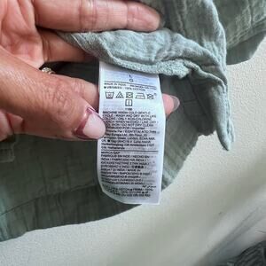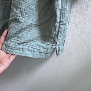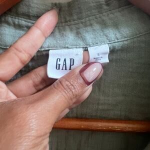 GAP Women's V-Neck Large Olive Green Cotton Loose Fitted Shirt Short Sleeve Top