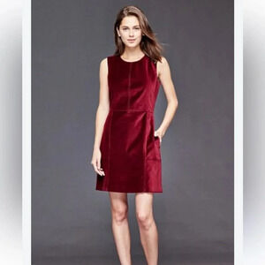 GAP Women's Velvet Suede Like Red Sleeveless Crew Neck Short Dress with Pockets Size 6 - Perfect Condition