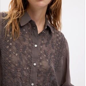 GAP Women’s XL Brown Embroidered Beaded Button-Up Boyfriend Shirt Boho Peasant