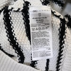 Stay cozy and stylish with this black and white striped knit sweater. Perfect for any casual outing.