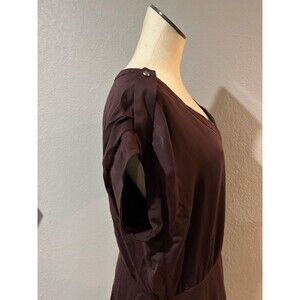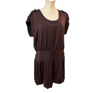 GAP WOMENS BUBBLE HEM CHOCOLATE BROWN MINI DRESS SIZE 14 SILKY SATIN CAP SLEEVE