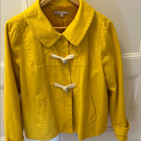 Vibrant yellow utility jacket by GAP. Features stylish toggle closure. Ideal for a bold look.